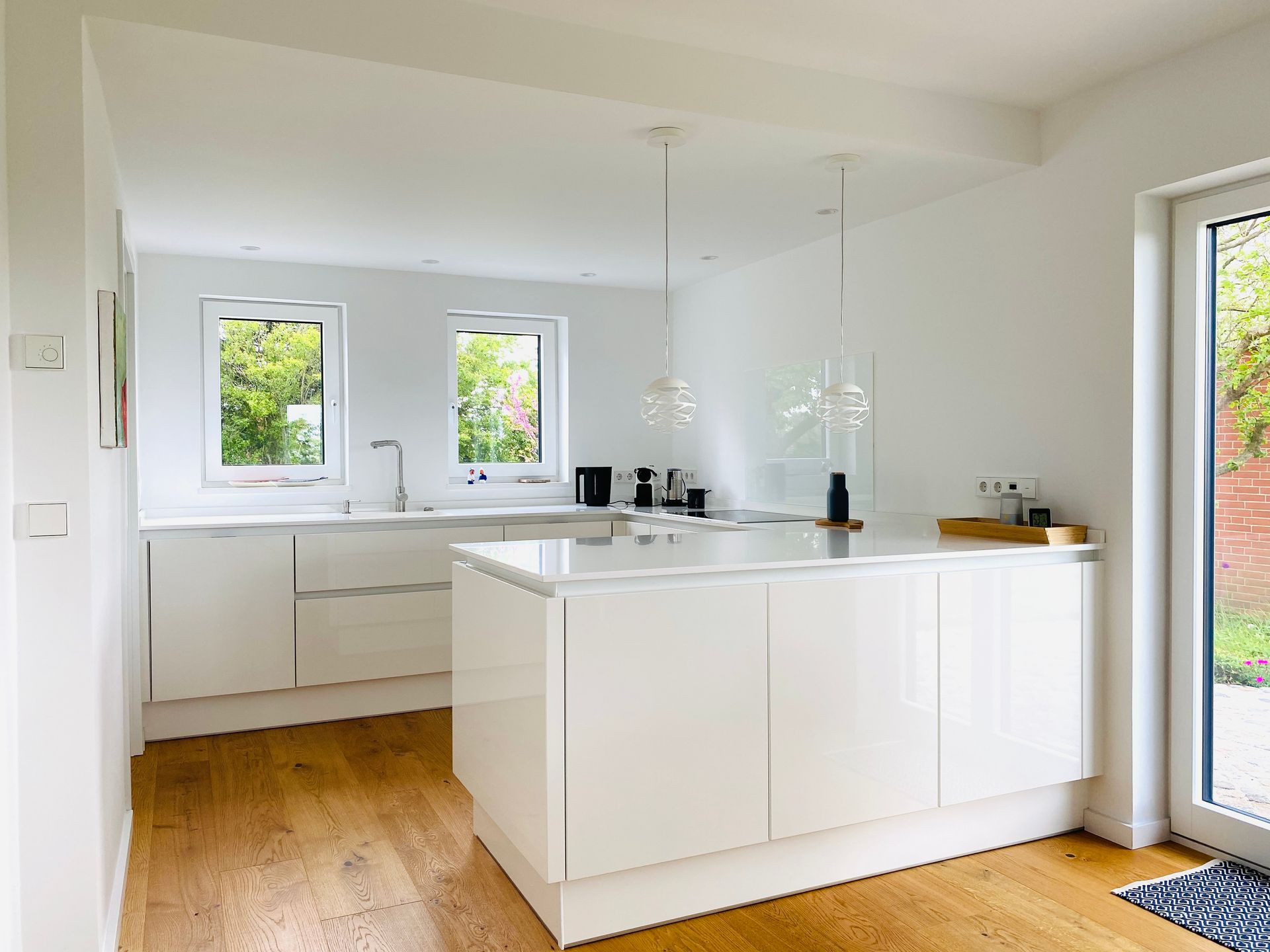 Ausreichend Porzellan, Besteck und Gläser, umfangreiche Kochutensilien, Kaffee- und Nespressomaschine, Milchaufschäumer und Wasserkocher, Toaster, Waffeleisen, Mixer, Spülmaschine, Induktionskochfeld, Backofen, zwei Kühlschränke sowie einen Gefrierschrank sind vorhanden.