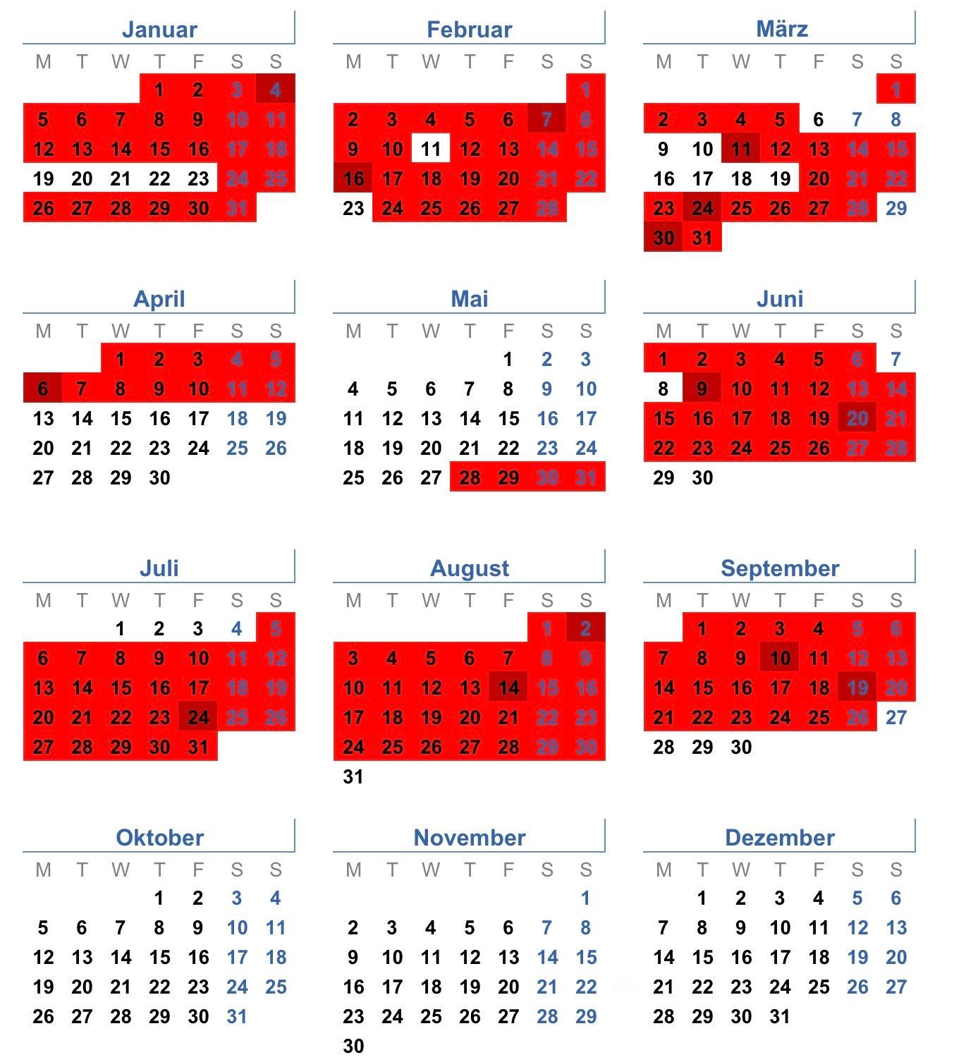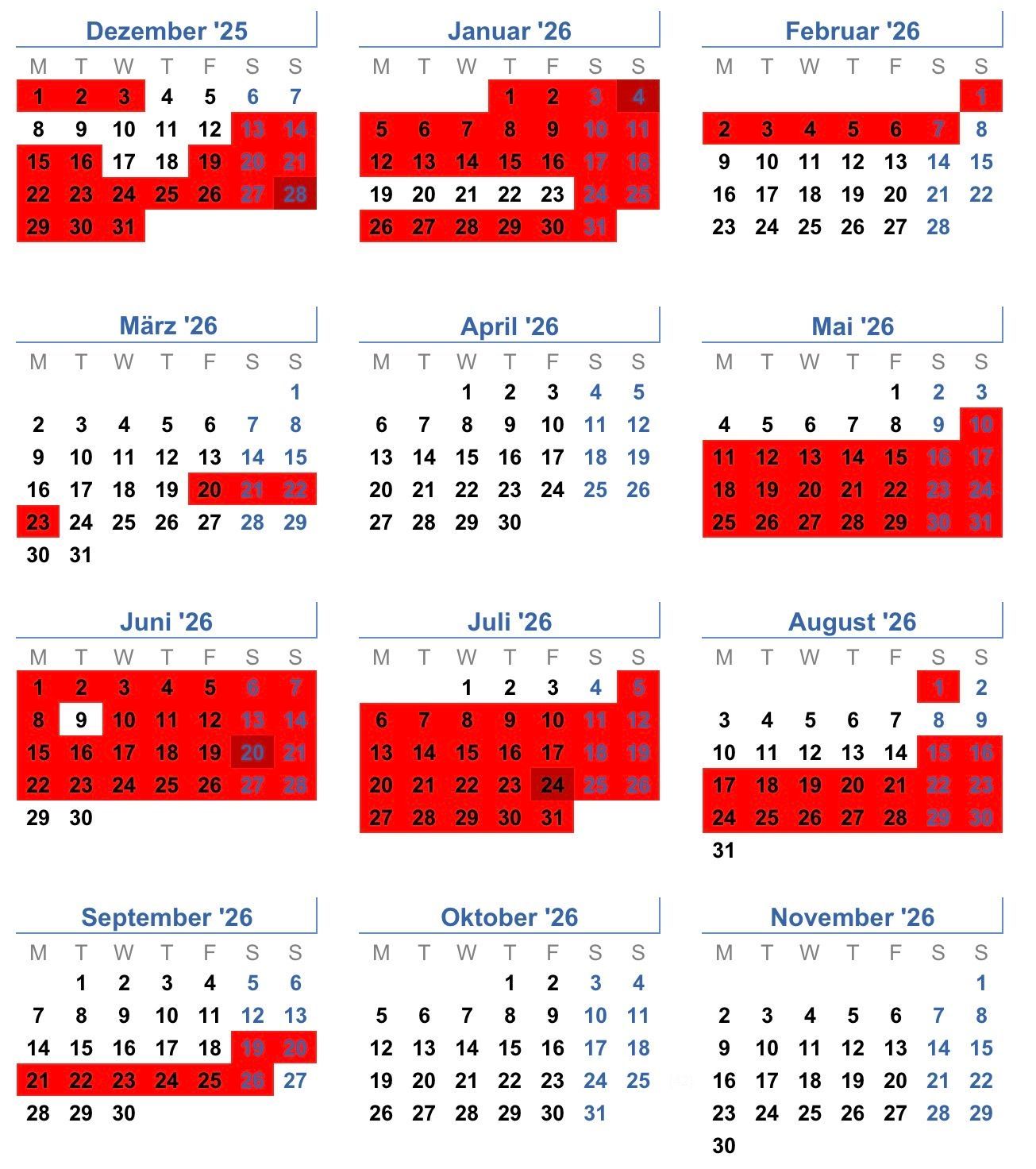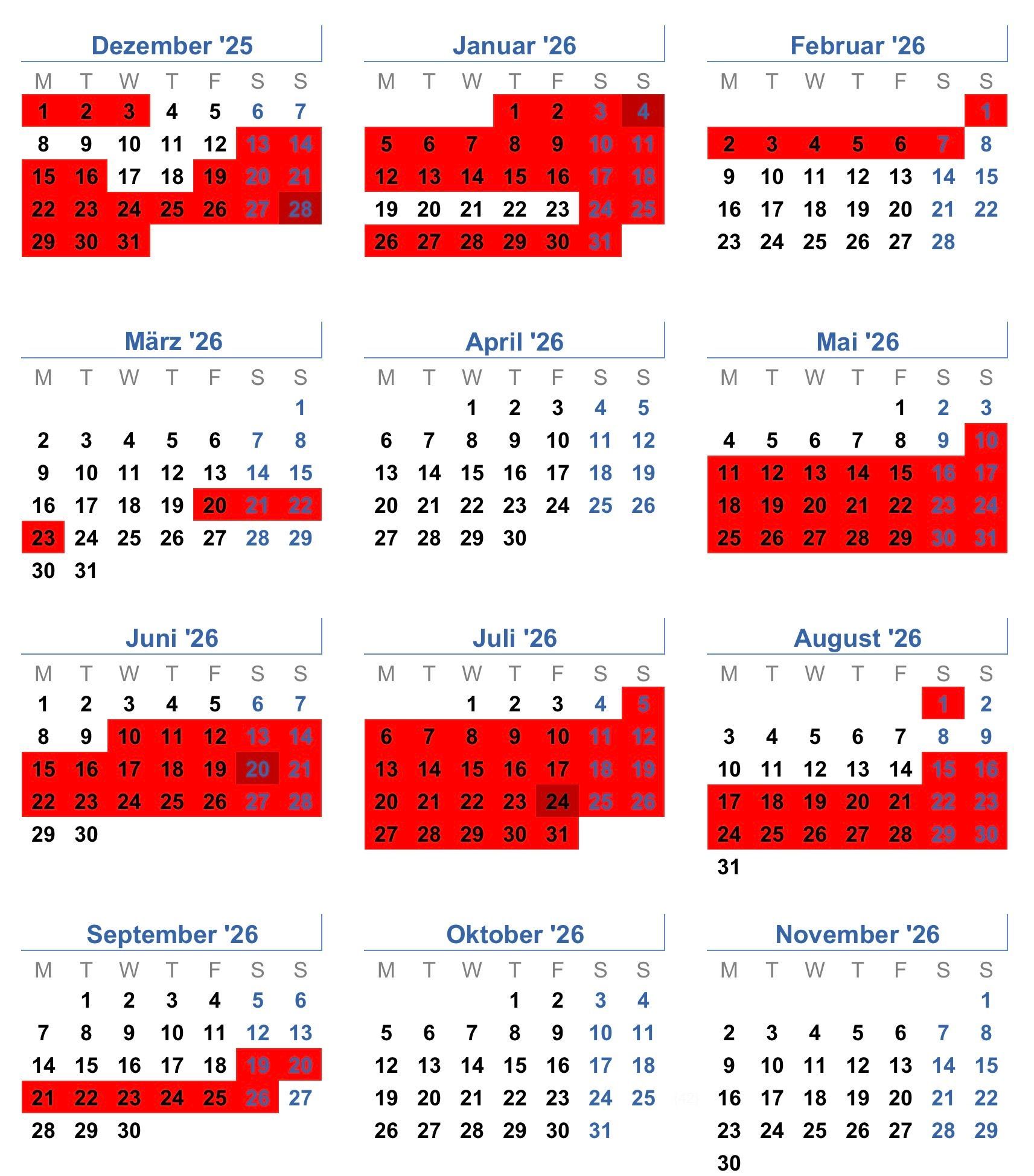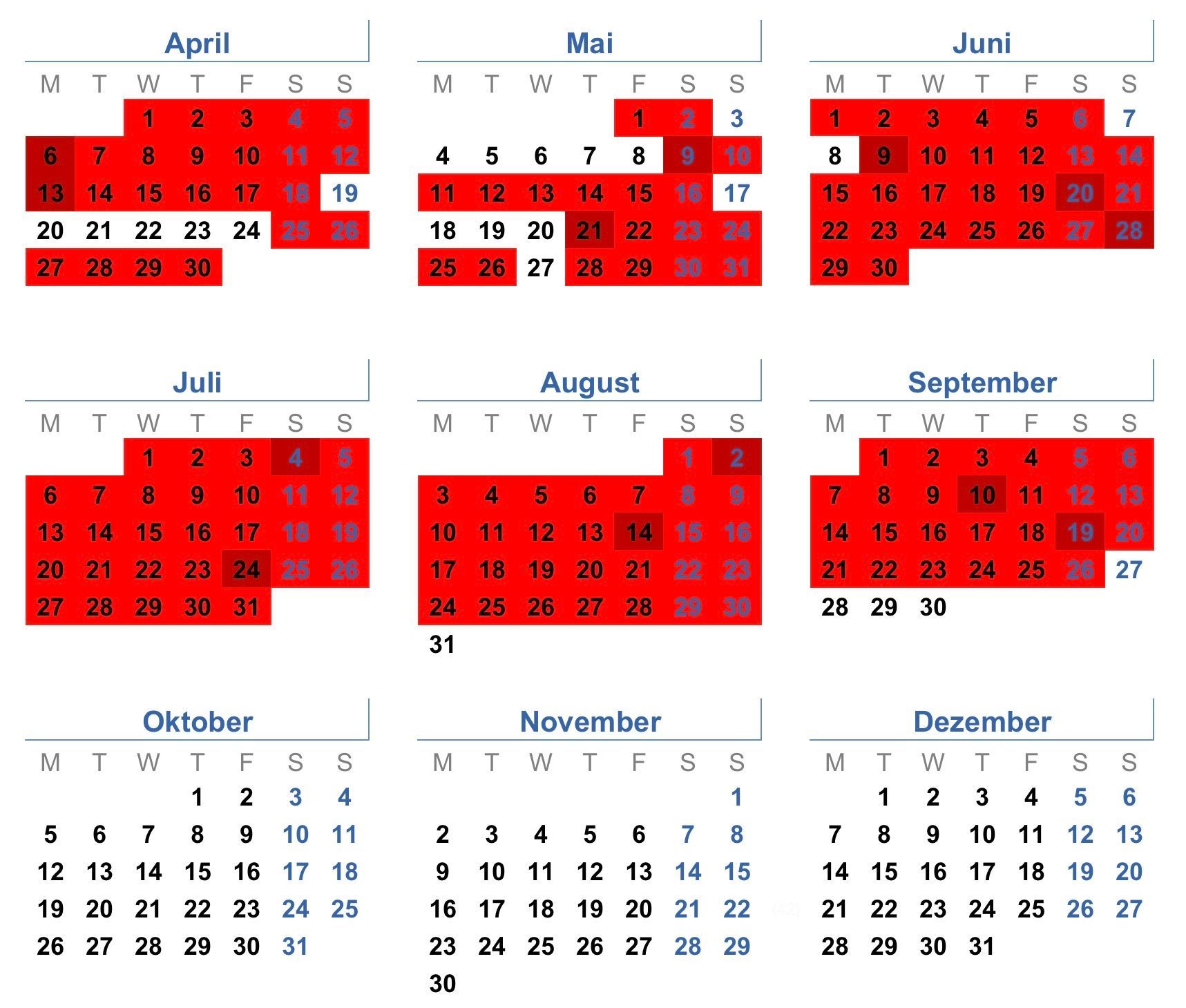 rot = belegt / nicht verfügbar